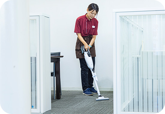 ホテルの客室からオフィス、倉庫などの清掃を行います。清掃は手作業というイメージがあるかもしれませんが、クリーナーなど最新機器の進歩により、特別なスキルや力仕事は必要ありません。先輩たちの前職もさまざまで、ほとんどのスタッフが未経験で入社しています。また、高い技術が求められるベッドメイキングはOJTでじっくり身につけていきます。現場で経験を積み、効率的、そして臨機応変にサービスを提供できる清掃スタッフを目指してください。キレイを作る仕事を、あなたも始めてみませんか。